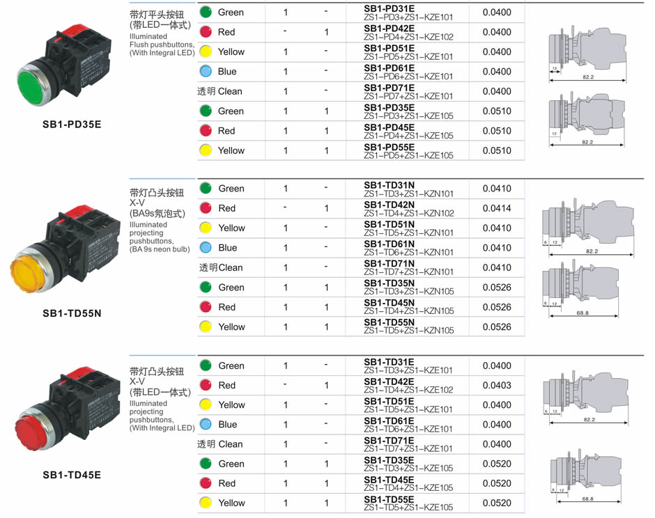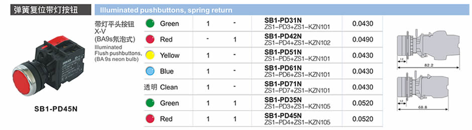 彈簧復位帶燈按鈕