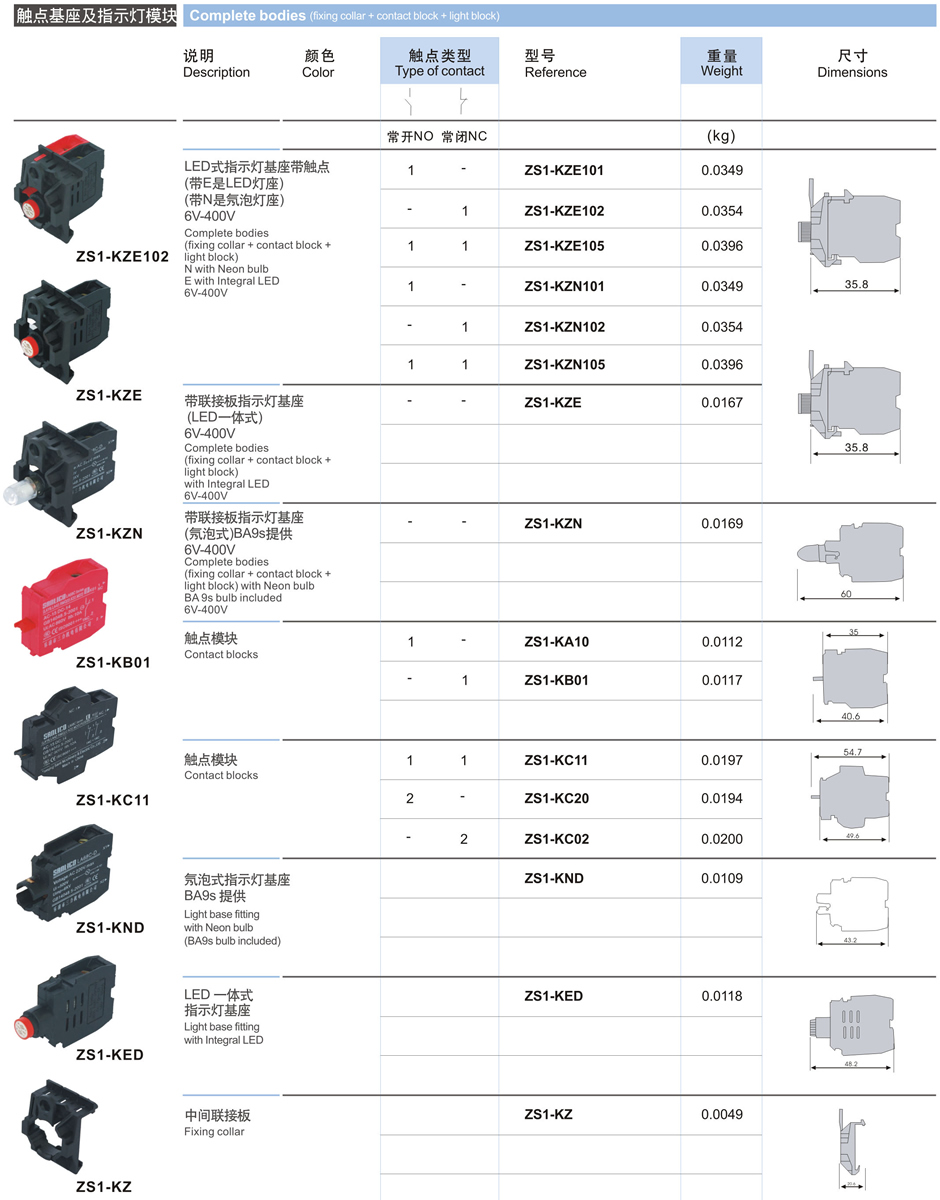 觸點(diǎn)基座及指示燈模塊