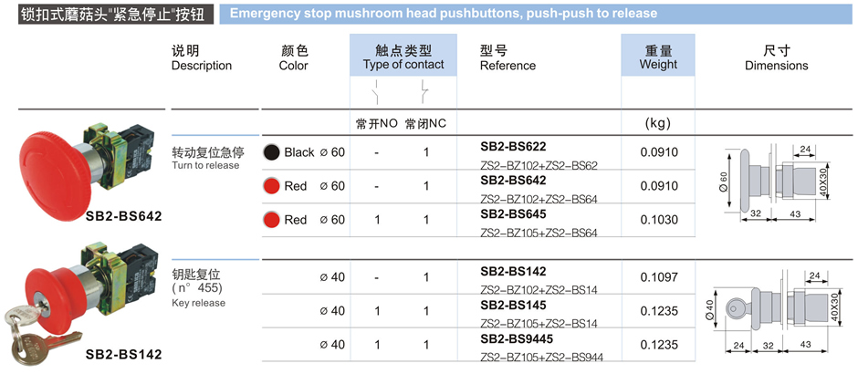 鎖扣式蘑菇頭"手動緊急停止"按鈕