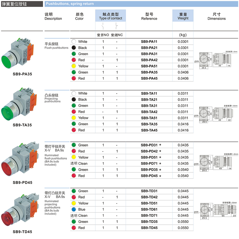 彈簧復位按鈕