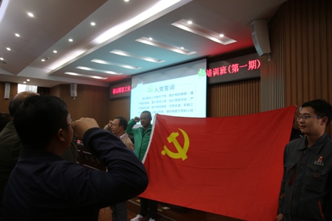 為了參加“萬名黨員進黨?!迸嘤枙鱾€支部提前安排協調車間一線工人倒班、換班,確保工作學習兩不誤,解決好工學矛盾。培訓會開班前進行了迎國旗、戴黨徽、重溫入黨誓詞、在莊嚴的國歌聲中拉開培訓的序幕。